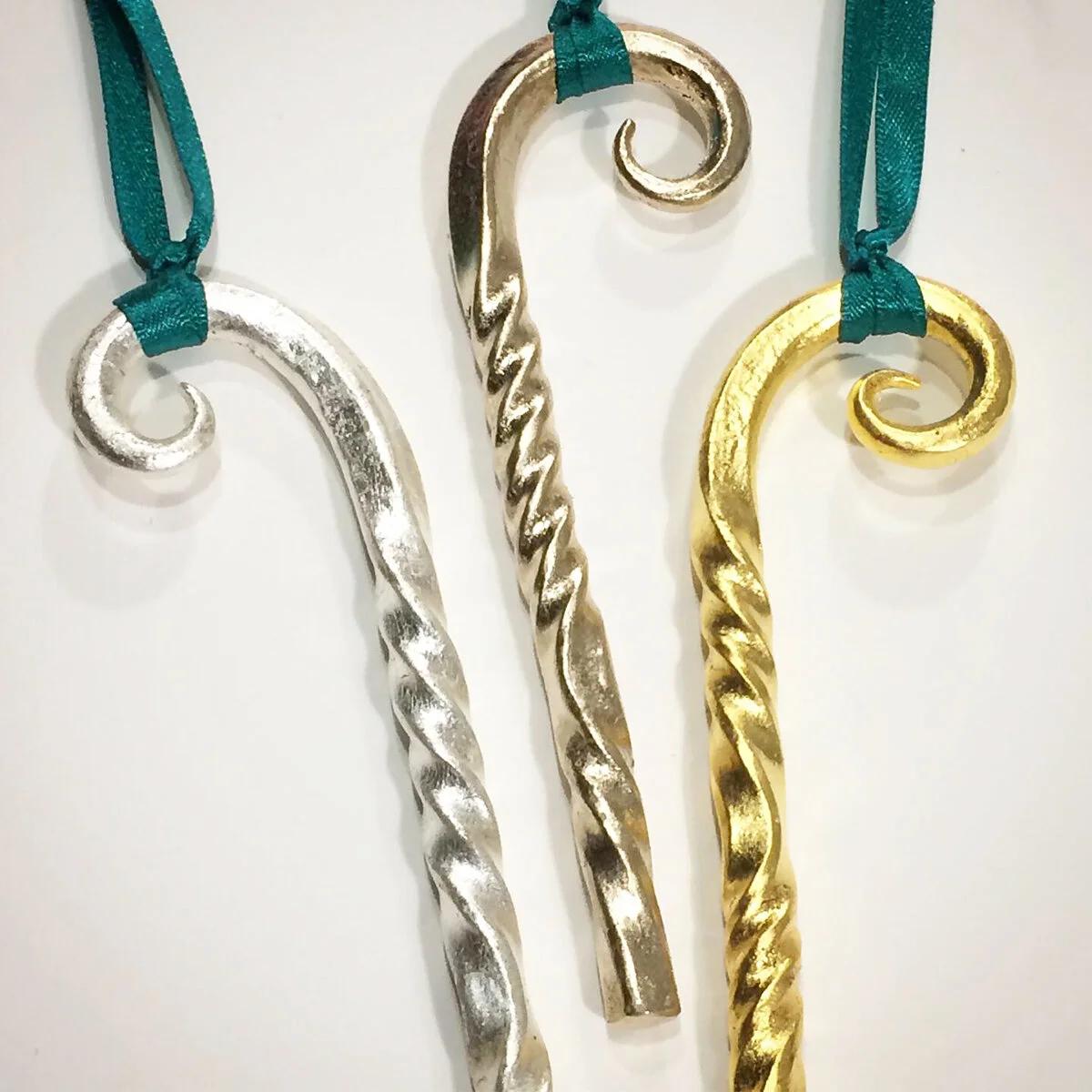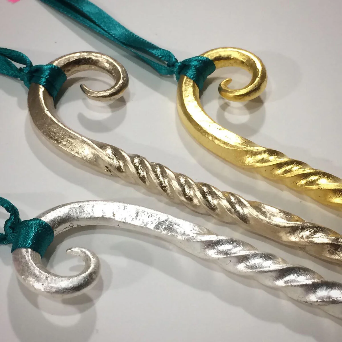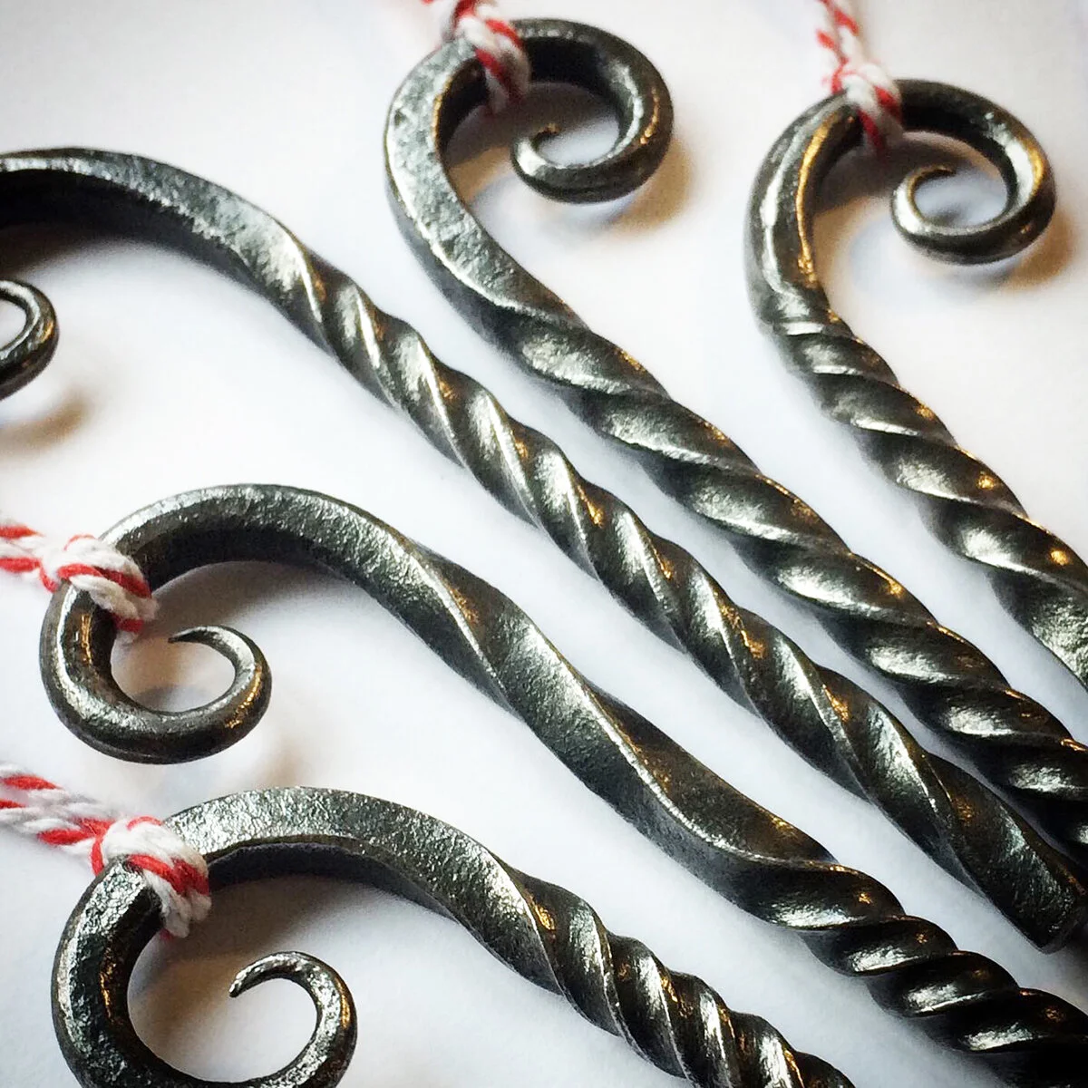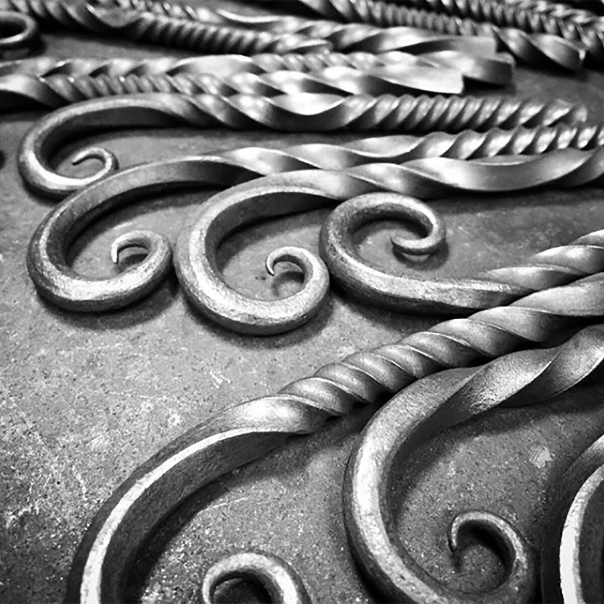 Forged mild steel, blackened and waxed, or gilded with silver leaf, moon gold leaf and 23.5ct gold leaf.
